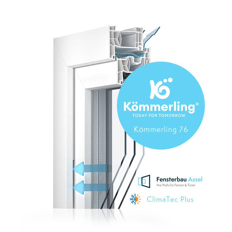 Kombiniert mit hochwertigen Funktionsgläsern bietet Ihnen das System Kömmerling 76 Anschlagdichtung hervorragenden Lärmschutz bis zu 47 dB.